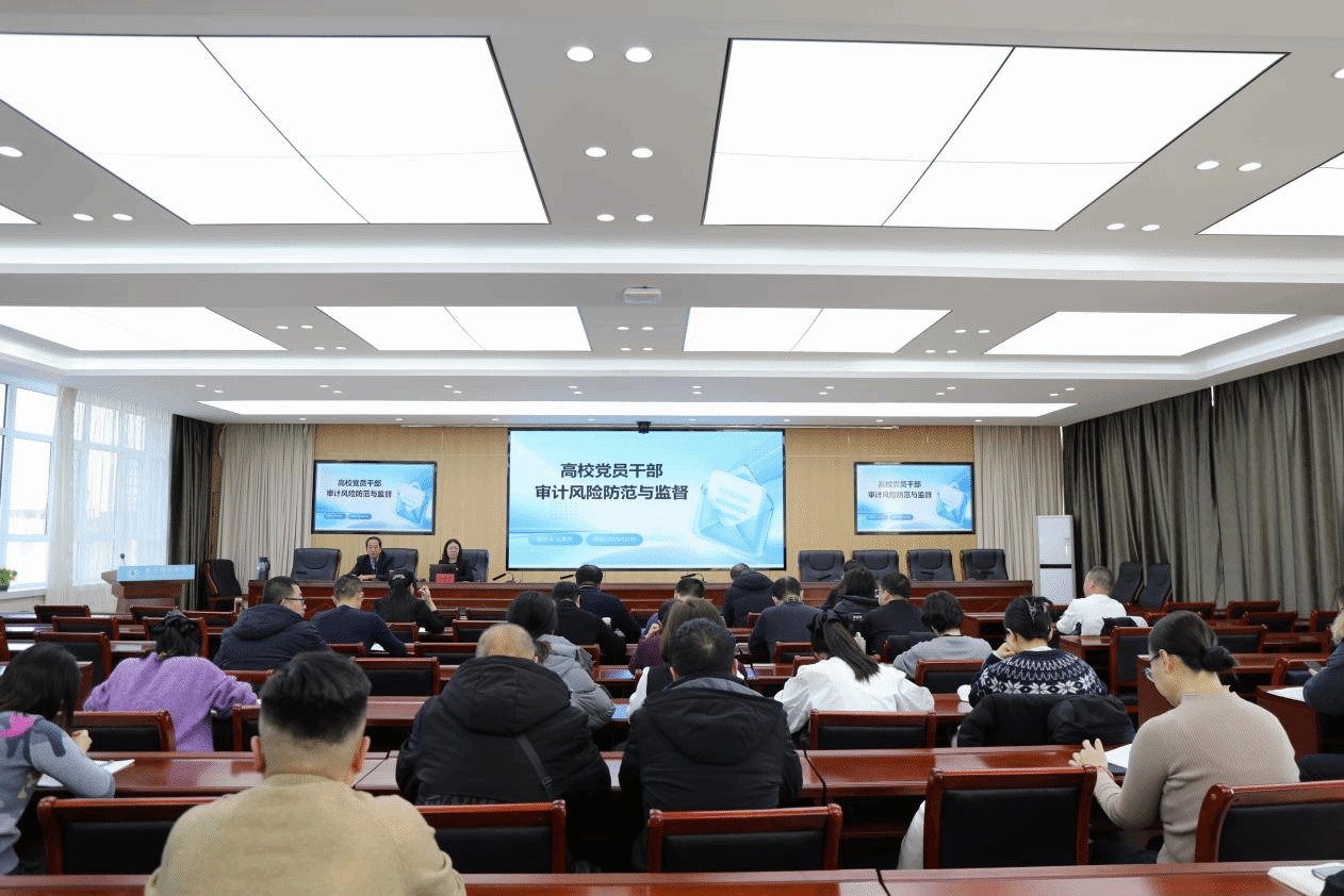 根据学校党委组织部印发的2025年度党员干部集中培训工作方案,12月19日审计处举办了高校党员干部审计风险防范与监督专题讲座。本次培训会特邀我校经济与管理学院副院长、教授么秀杰作专题讲座。审计处处长兰立新主持会议,各二级学院院长及办公室主任、各相关部门科级干部参加了会议。