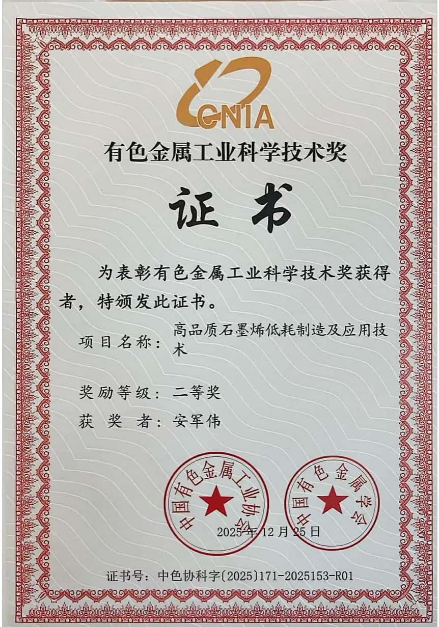 记者从集宁师范学院获悉,该校石墨烯研究院安军伟教授团队在高质量石墨烯低消耗制备及应用技术上取得关键突破,相关项目荣获2023年度中国有色金属工业科技进步二等奖。该奖项是我国有色金属行业最高级别科技奖项之一,在国务院奖励办公室备案,旨在表彰在行业技术进步、成果转化等方面做出突出贡献的集体与个人,具有重要的行业影响力与公认度。