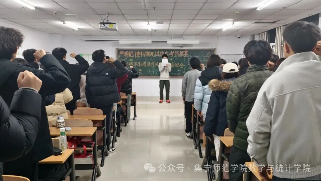 走进大学校园的第一次正式考试,对于每一位新生而言,都是成长路上的一道重要分水岭。12月29日,数学与统计学院于逸夫楼2Y301开展“严明纪律树新风,诚信应考筑根基”2025级学生诚信考试集中教育班会。我院党总支副书记常鑫、学团办公室副主任刘紫玉和班主任张瑜参与本次会议。