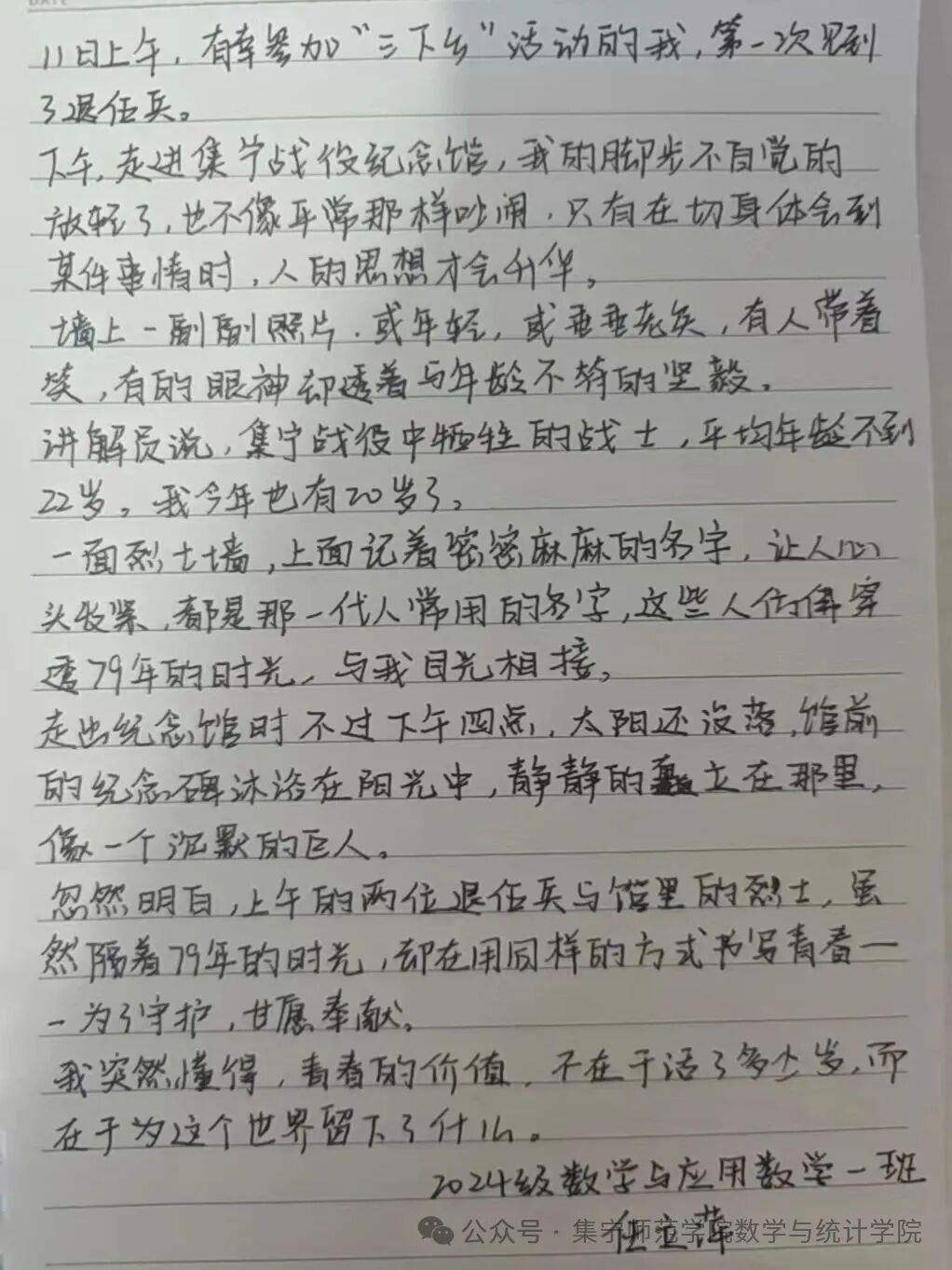 三位退役军人的故事里,藏着卫国戍边的坚守与热血,更饱含着对家国的深情与担当。愿我院学子能传承这份卫国戍边的精神,带着对家国的责任与理想,在各自的赛道上奋力奔跑,让青春在服务社会、奉献家国中绽放光彩。