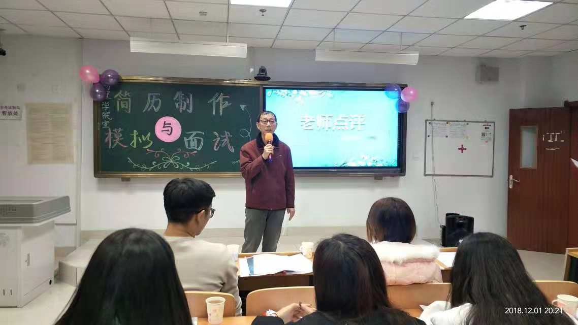 为了让以后步入社会、走上求职道路的学子们能够增加就业信心,提高面试的成功率,物理学院于12月1日在逸夫楼Y405组织举办了简历制作与模拟面试大赛。莅临本次大赛的嘉宾有陈宗黎老师、外国语学院主席以及生活部副部长、文学院学生会主席团代表。
