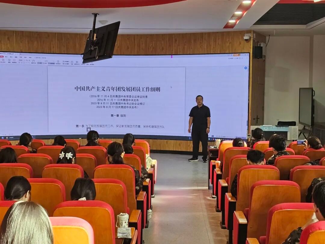 冀文慧老师首先对《中国共产主义青年团发展团员工作细则》进行了深入讲解,他强调了发展团员工作的严肃性和规范性,详细介绍了团员发展的流程和标准,引导新生树立正确的入团动机,鼓励同学们积极向团组织靠拢,在实践中锻炼自己,争取早日成为一名光荣的共青团员。