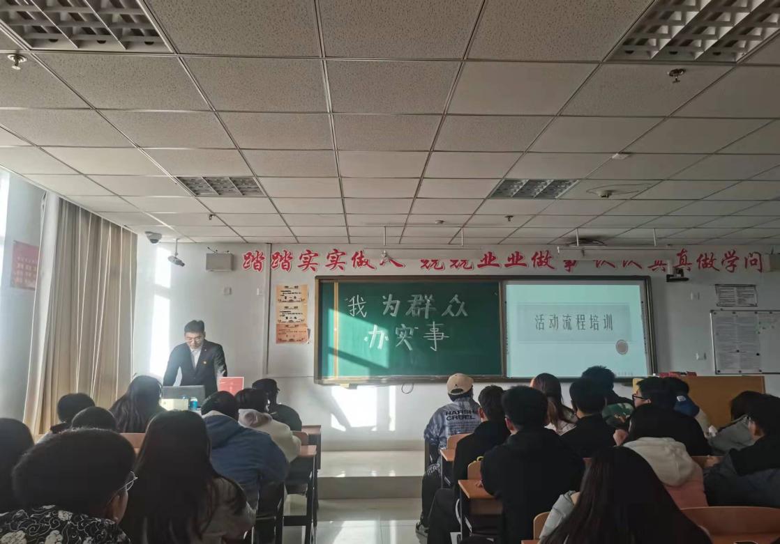 自党史学习教育开展以来,物理与电子信息工程学院紧密结合学院工作,将“我为群众办实事”活动走深、走实。2021年11月21日上午,物电院学工党支部举办了“我为群众办实事”系列活动,重点对我院全体学生会成员进行活动流程培训,本次活动由学生党员靳永超同志主讲,学生会全体成员参加。