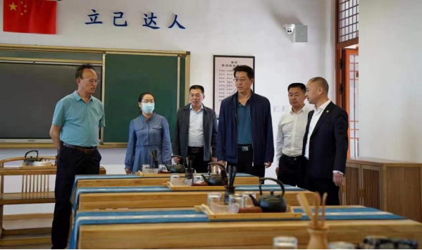 在天立学校小学部校长尹小平、初中部校长梁光斌和高中部校长汪新栋等的热情接待下,大家参观了2021年建成并投入使用的学校茶艺室、陶艺室、书法室、报告厅和游泳馆等各功能室及教学楼、宿舍楼等。