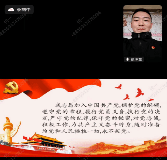由物电院学生党支部流动党小组组长张泽童同志带领全体党员重温入党誓词。