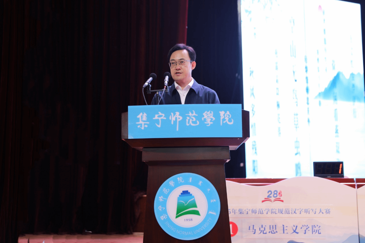 本次活动由校语委、国家语言文字推广基地(集宁师范学院)联合主办,文学与新闻传播学院、普通话水平培训测试工作站共同承办。集宁师范学院党委书记张宝成,党委副书记李景杰,党委委员、统战部部长赵向军,教务处处长姚玉阁,国家语言文字推广基地执行主任张一弘,党政办副主任杨晓宇及各二级学院相关负责人出席活动。规范汉字听写大赛邀请内蒙古语言学会会员、文学与新闻传播学院韩丽国副教授担任主考官;文学与新闻传播学院院长郭鹏教授、语言文字专家李秀林教授、中国硬笔书法协会会员、国家级普通话水平测试员郝青山老师担任评委。文学与新闻传播学院全体师生及泉山校区各学院师生代表共同观看比赛。