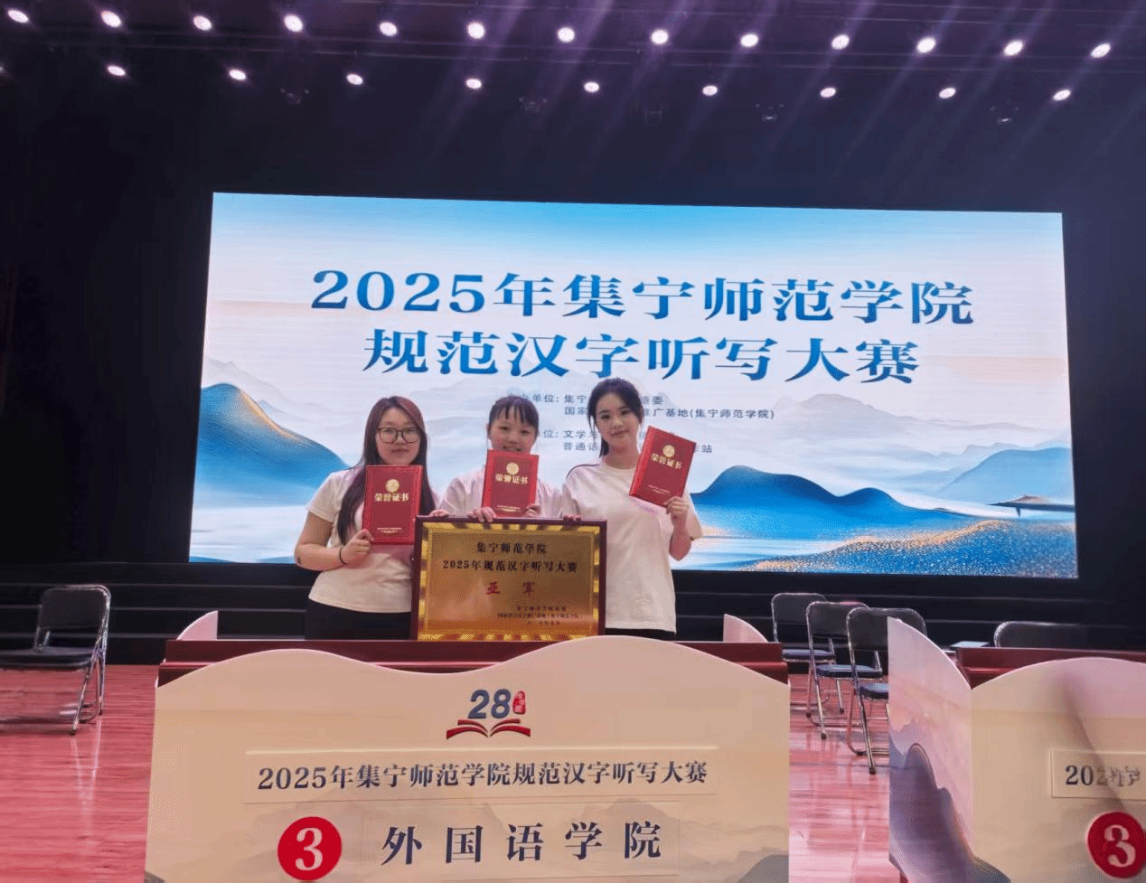 在9月18日举办的2025年集宁师范学院规范汉字听写大赛中,外国语学院派出由2023级二班宾奕轩、2024级四班孙冉、2025级二班张心语三位同学组成的代表队表现优异,从全校18支参赛队伍中脱颖而出,最终以总分第二名的优异成绩荣获大赛亚军!