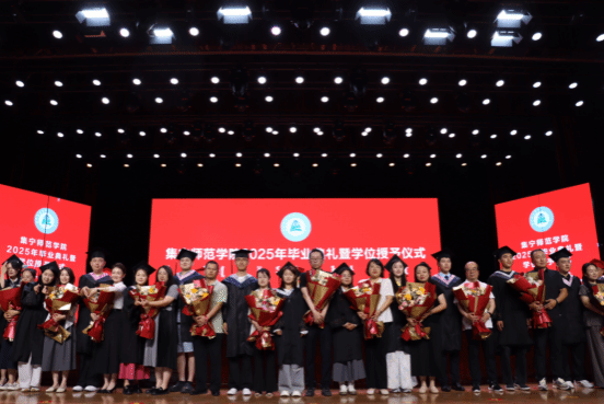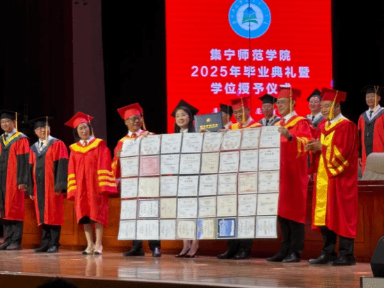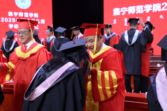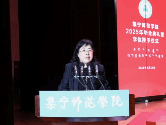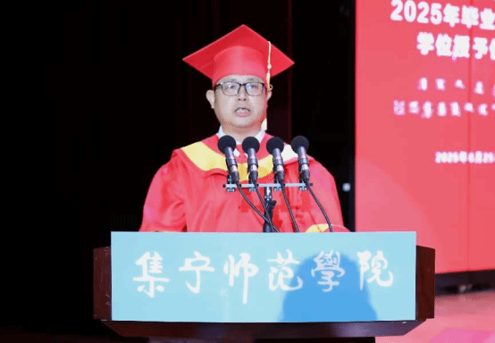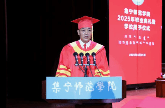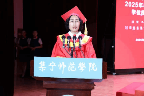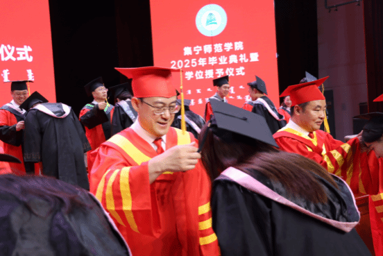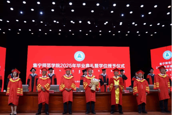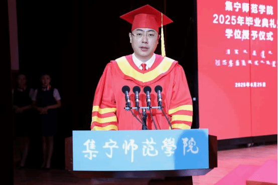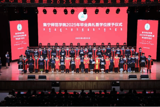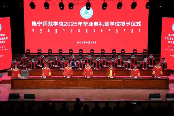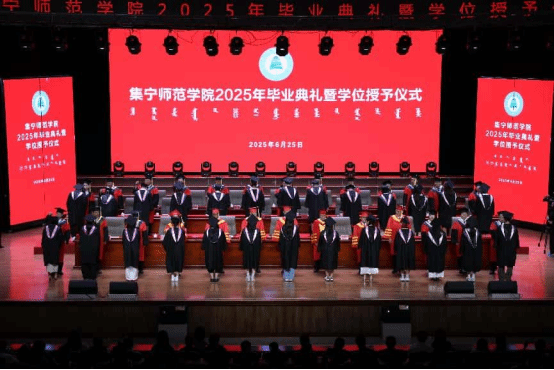 6月25日上午,集宁师范学院2025年毕业典礼暨学位授予仪式在泉山校区逸夫楼多功能厅隆重举行。师生校友齐聚一堂共同见证并庆祝2025届毕业生圆满完成学业。校党委书记张宝成,党委副书记、校长周建华,党委副书记李景杰,副校长李凤斌,党委委员、纪委书记、监察专员赵永军,党委委员、副校长拓俊杰、张秀文出席典礼。校学位评定委员会全体委员在主席台就座。各二级学院、职能部门教职工代表,2025届毕业生及部分亲友代表参加典礼。毕业典礼由张秀文主持。