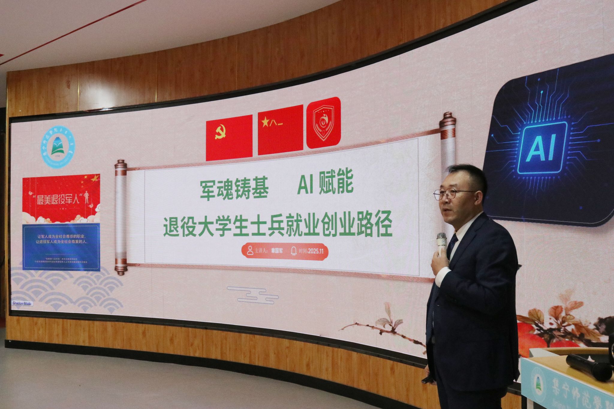 活动现场,乌兰察布市侯素馨就业创业指导师工作室就业创业指导师、集宁师范学院历史文化学院副院长章国军作《军魂铸基AI赋能:退役大学生士兵就业创业路径》专题讲座,深入剖析了当前就业创业市场的新形势与新机遇,重点围绕人工智能技术在就业创业领域的应用展开讲解,为退役大学生士兵拓展就业创业思路、找准发展方向提供了专业指导。
