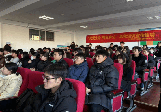 宣讲环节,急救中心医护人员紧扣校园常见突发场景,以真实鲜活的急救案例为切入点,用通俗易懂、生动详实的语言系统讲授了心肺复苏术、海姆立克急救法、120 急救电话规范拨打流程及正规救护车识别等实用技能。针对校园中易发生的运动损伤、意外晕厥、气道异物梗阻等情况,讲师重点拆解了心肺复苏的操作规范 —— 从患者意识判断、紧急呼救流程,到胸外按压的精准位置,再到人工呼吸的配合技巧,每一个操作环节均通过模拟人进行精准示范讲解,并反复强调“黄金4分钟”在急救中的关键作用,让师生深刻认识到及时施救的重要性。