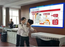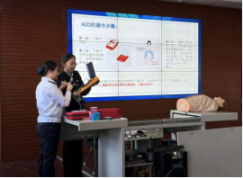 在气道异物梗阻急救教学中,医护人员详细演示了海姆立克急救法针对成人、儿童的差异化操作要领;同时,逐一拆解了自动体外除颤仪(AED)的完整使用流程,从设备开机启动、电极片精准粘贴位置,到电击前的安全确认步骤,帮助师生快速掌握这一“救命神器”的操作逻辑。此外,讲师还普及了120急救电话的拨打要点,着重提醒需清晰、准确告知事发详细地址、伤者具体伤情及有效联系方式等关键信息,避免因信息模糊延误救援时机。