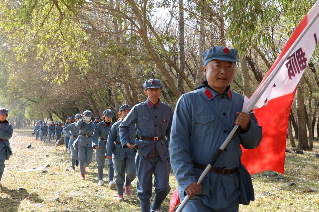 上午, 模拟长征路活动在察哈尔右翼后旗锡勒乡举行,集宁师范学院统战部部长张秀文带领全体师生党员重温了入党誓词,一句句铿锵有力的誓言拉开了模拟长征路的序幕。教育科学学院党总支书记张妙珠讲话。她指出,在主题教育深入开展的关键时期,开展此次“追寻红色之路 传承红色基因”主题党日活动意义重大。长征,在人类历史上前所未有,极其伟大。它创造了人类历史上无可复制、无与伦比的英雄业绩,谱写了惊天地、泣鬼神的伟大革命诗篇。张妙珠强调,作为新时代的共产党员,我们要传承伟大的长征精神,通过模拟长征路再一次追寻革命传统理想和信仰,永远铭记初心,坚定信仰,明确未来努力方向。