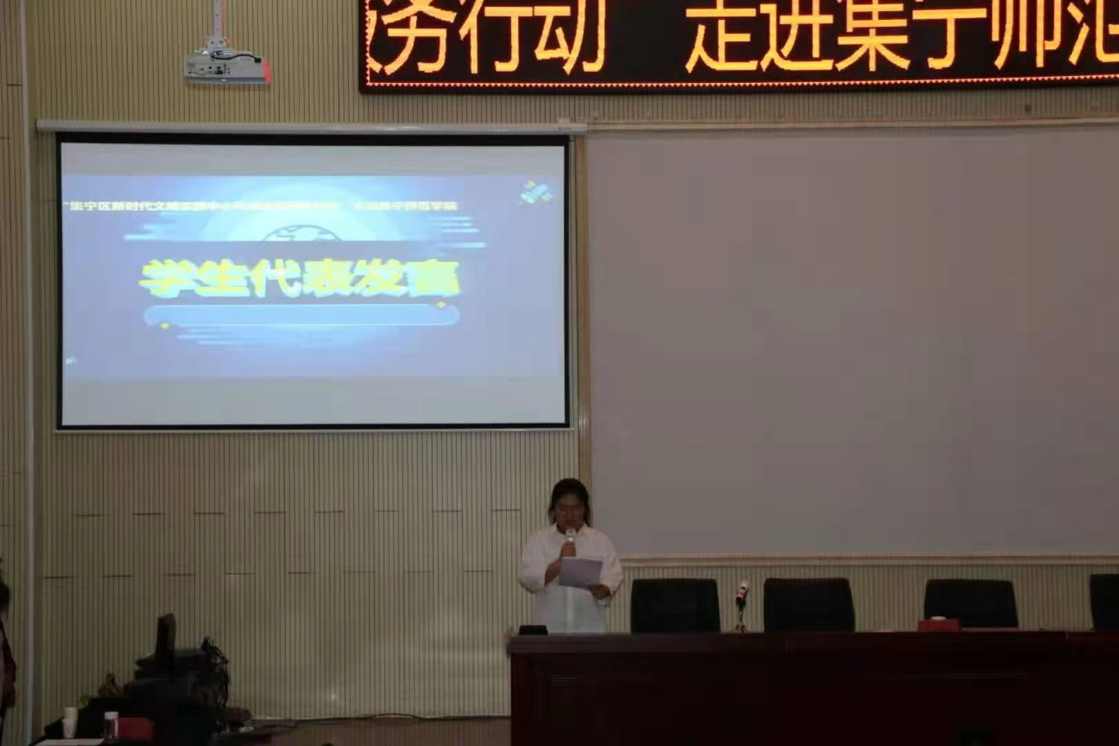 11月10日下午,由教育科学学院与集宁区科学技术协会举办的“集宁区新时代文明实践中心科技志愿服务行动走进集宁师范学院”活动在白海校区举行。集宁区科协主席教传助、科普部部长闫哲、教育科学学院党总支书记张妙珠、院长孙霞、学工办主任韩超出席活动,活动由教育科学学院团总支负责人曹晔主持,教育科学学院部分学生代表参加了活动。