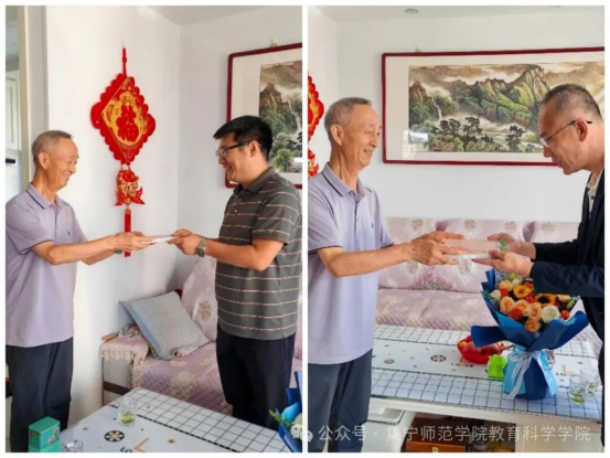 9月8日,学院领导班子成员前往原教育系首任党总支书记孙忠诚教授家中慰问,代表全院师生表达诚挚问候,关切询问其身体和生活状况,并聆听孙教授回顾教育系初创时期的奋斗历程。