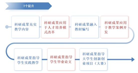 学院围绕学科发展需求,努力实践科研工作“七个提升”原则,即:科研成果充实教学内容、科研成果应用于人才培养模式改革、科研成果融入教材编写、科研成果应用于教学案例开发、科研成果指导学生实践教学、科研成果指导学生毕业论文、科研成果指导大学生创新创业项目(大赛)等,创新激励机制,充分激发师生协同创新活力,实现了“科研带教学、教学促科研”的良性循环。