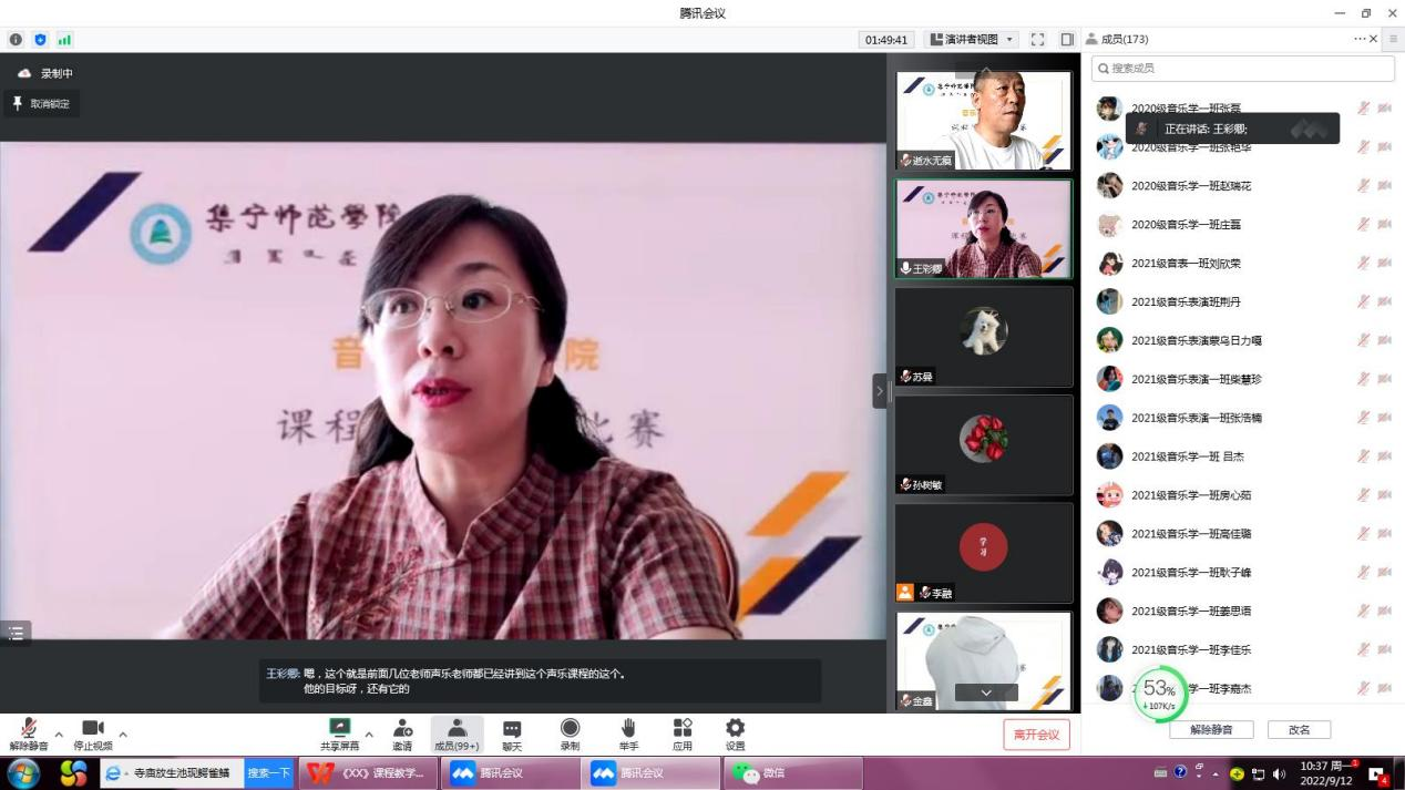 根据集宁师范学院《关于举办课程思政教学比赛》文件要求,音乐与舞蹈学院于9月12日上午在线上举办了课程思政教学比赛,美术与设计学院校级督导员冯旭东、梁岩老师、学院全体教师和20、21级无课学生,全程参加和观摩了本次比赛。