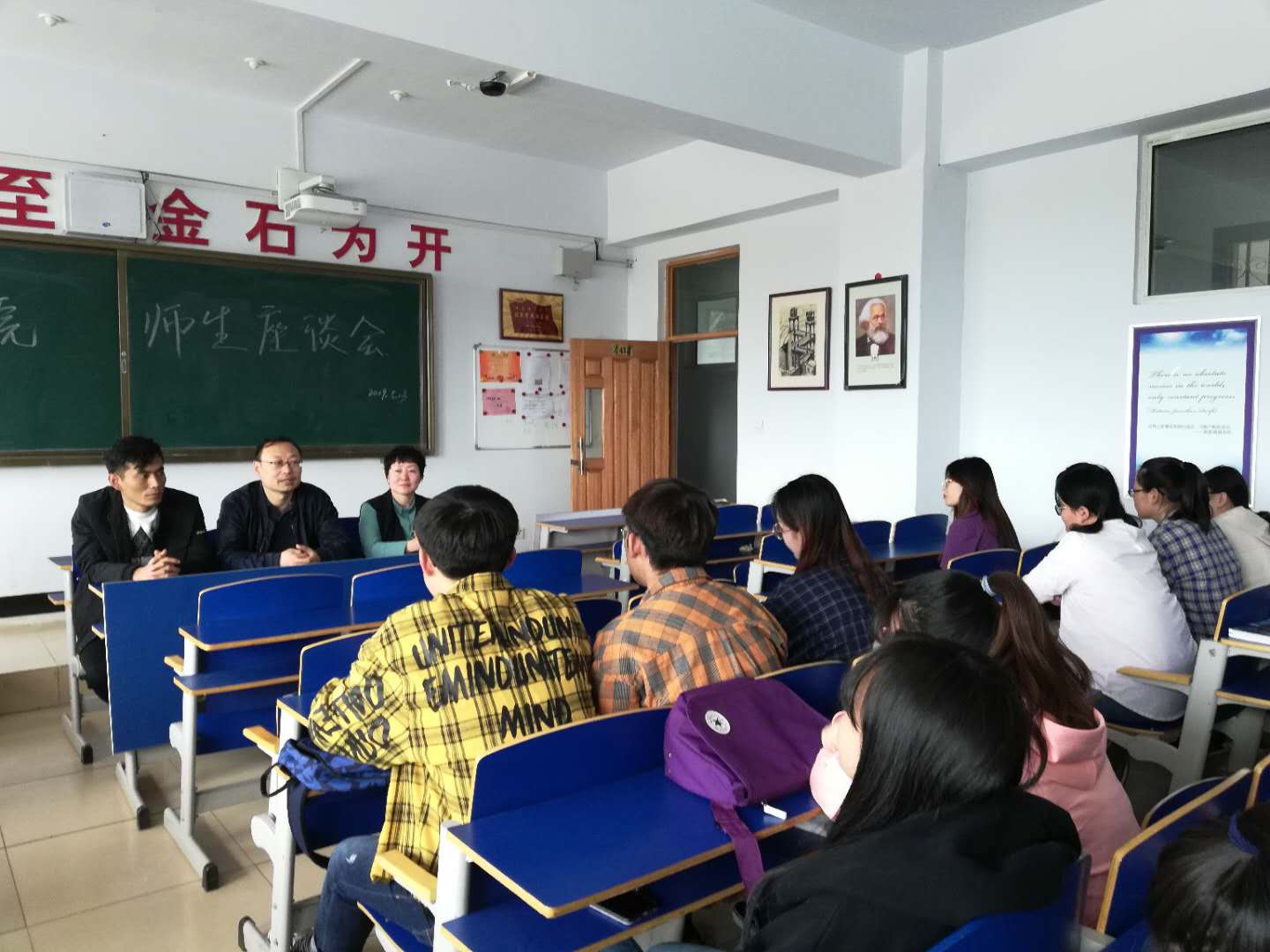 按照我校《教务处、学生处、评建办关于开展2018—2019学年第二学期期中检查的通知》要求,为更全面了解掌握我院教学过程中存在的问题,2019年5月13日上午,政史学院于泉山校区主教楼413教室举行师生座谈会。学院副院长张军、学工办主任田博、教师代表张秀芬以及各班学生代表参加座谈。