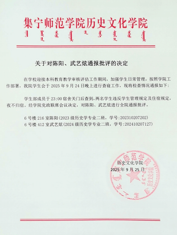 历史文化学院开展2025-2026学年新学期宿舍安全卫生专项检查